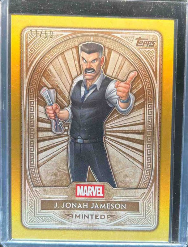 The J. Jonah Jameson 2025 Topps Mint #43 Gold Foil /50 card is 1 of 16 J. Jonah Jameson's card variations in the 2025 Topps Mint set being tracked by Sports Card Investor, including Base, Green Mint Foil /75, Orange Foil /25, Black Foil /10, and Red Foil /5.