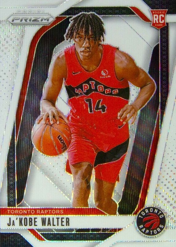 The Ja'Kobe Walter 2024 Prizm #223 White Wave /38 Rookie card in Raw condition has not changed in price in the last 30 days and was last sold for $51.50 .