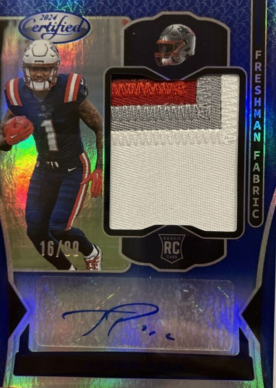 The Ja'Lynn Polk 2024 Certified #FMS-JPK Freshman Fabric Signatures - Mirror Blue /99 Rookie card in Raw condition has not changed in price in the last 30 days and was last sold for $3.50 .