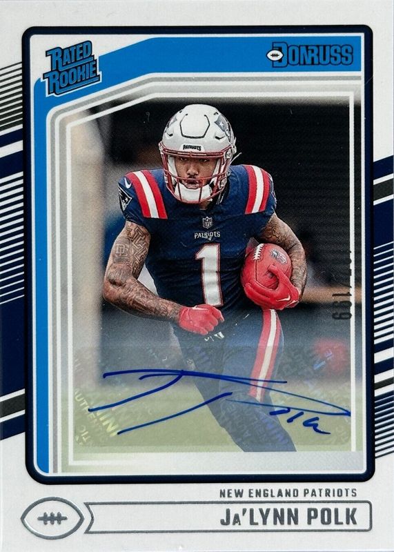 Auctions Ending Soon for Ja'Lynn Polk 2024 Donruss #373 Rated Rookie Autographs - Blue RAW