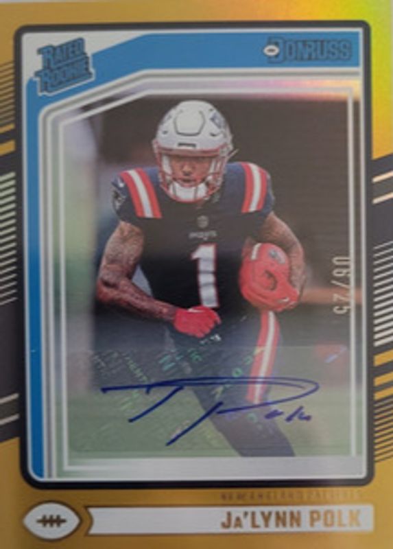 2024 Donruss Rated Rookies Ja’Lynn Polk Auto SSP Gold /25 Patriots