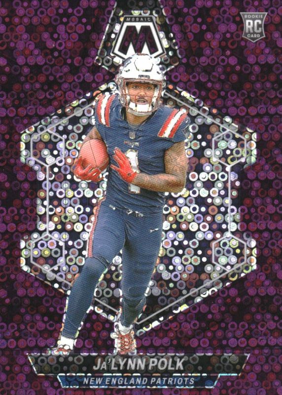 2024 Panini Mosaic #337 Ja'Lynn Polk RC Rookie No Huddle Purple 22/50 Patriots