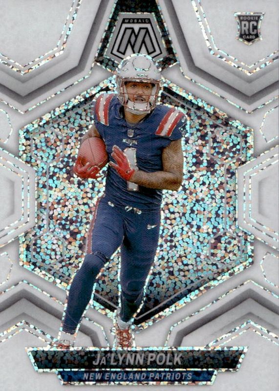 This card is 1 of 61 Ja'Lynn Polk's card variations in the 2024 Mosaic set being tracked by Sports Card Investor, including Base, Green, Mosaic, No Huddle, and Pink Camo.