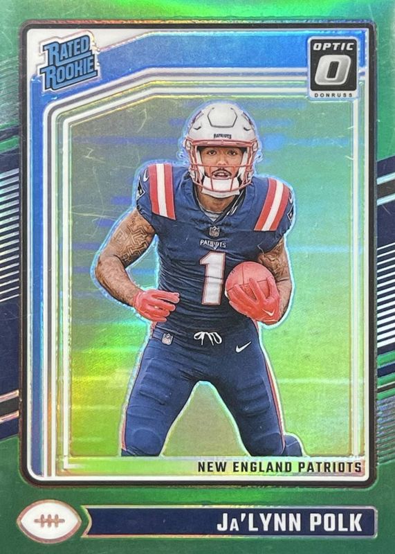 This card is 1 of 58 Ja'Lynn Polk's card variations in the 2024 Optic set being tracked by Sports Card Investor, including Base, Blue Hyper, Blue Scope, Green Hyper, and Green Velocity.