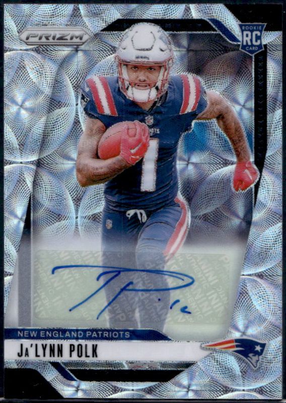 The Ja'Lynn Polk 2024 Prizm #339 Base Autographs - Choice /100 Rookie card is 1 of 117 Ja'Lynn Polk's card variations in the 2024 Prizm set being tracked by Sports Card Investor, including Base, Choice Blue Yellow Green, Choice Silver, Disco, and Green.