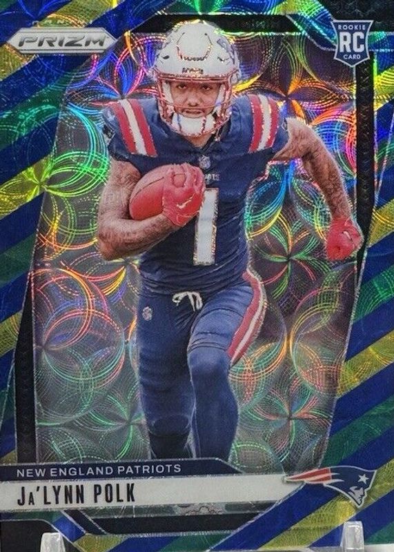This card is 1 of 117 Ja'Lynn Polk's card variations in the 2024 Prizm set being tracked by Sports Card Investor, including Base, Choice Silver, Disco, Green, and Green Ice.