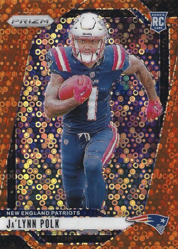 2024-25 Panini Prizm #339 Ja’Lynn Polk Orange Disco Prizm Rookie Patriots RC