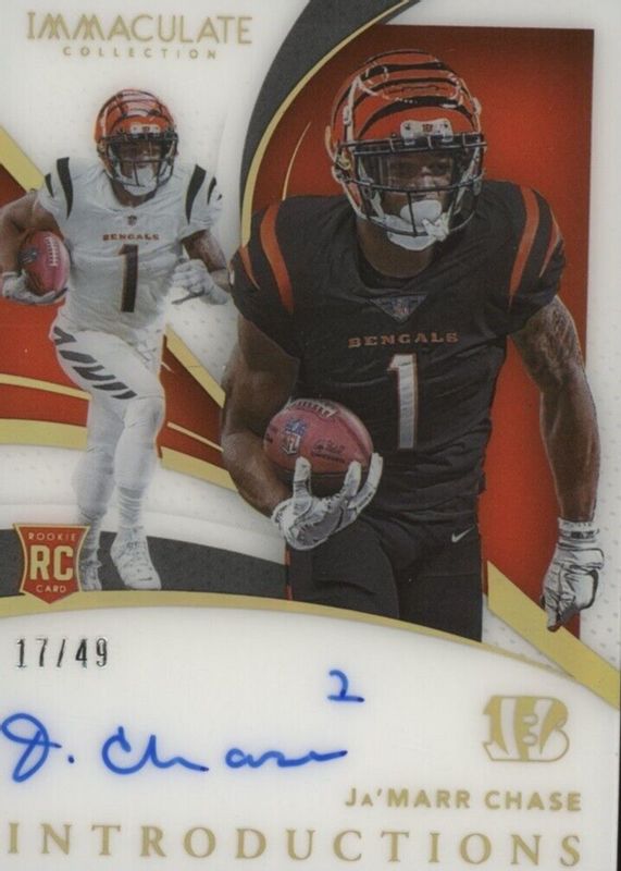 The Ja'Marr Chase 2021 Immaculate #II-JC Immaculate Introductions Autographs (/49) Rookie card in Raw condition has not changed in price in the last 30 days and was last sold for $205.00 .