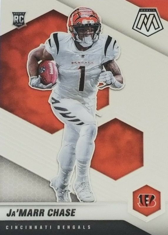 The Ja'Marr Chase 2021 Mosaic #307 Base Rookie card in Raw condition has moved down -$0.26 (-20.8%) in the last 30 days and was last sold for $0.99 .