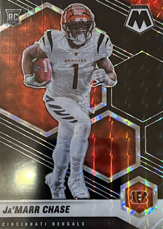 The Ja'Marr Chase 2021 Mosaic #307 Black /1 Rookie card in Raw condition has not changed in price in the last 30 days and was last sold for $8,100.00 .