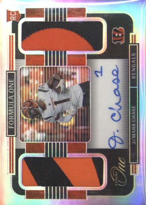 2021 Panini One Ja'Marr Chase Formula 1 Rookie RC Dual Patch Auto #5/30 Bengals