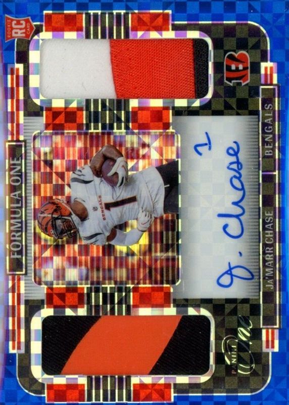 2021 Panini One Blue Formula One Ja'Marr Chase RPA RC Dual Patch AUTO 2/25