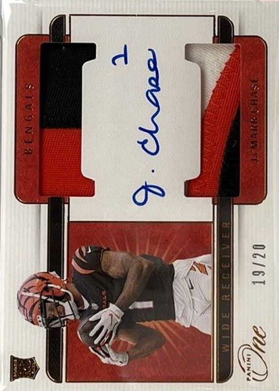 Auctions Ending Soon for Ja'Marr Chase 2021 One #37 Rookie Dual Patch Auto - Bronze (/20) RAW