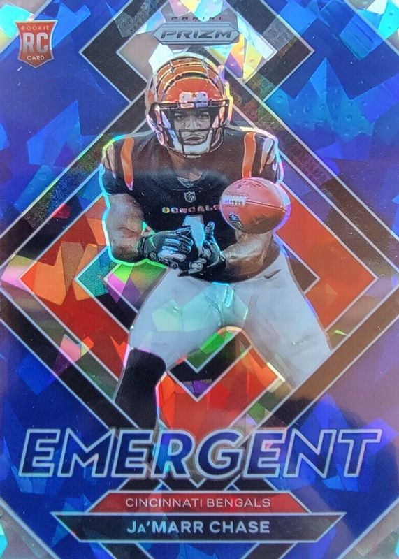 2021 Panini Prizm JA'MARR CHASE Emergent Blue Cracked Ice /99 RC Insert + Base
