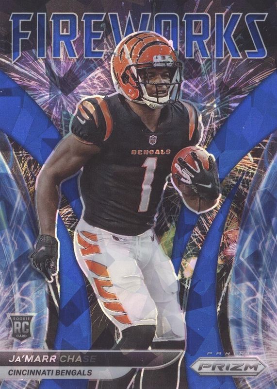 2021 Panini Prizm - Fireworks Blue Ice Prizm Ja’Marr Chase /99 Bengals