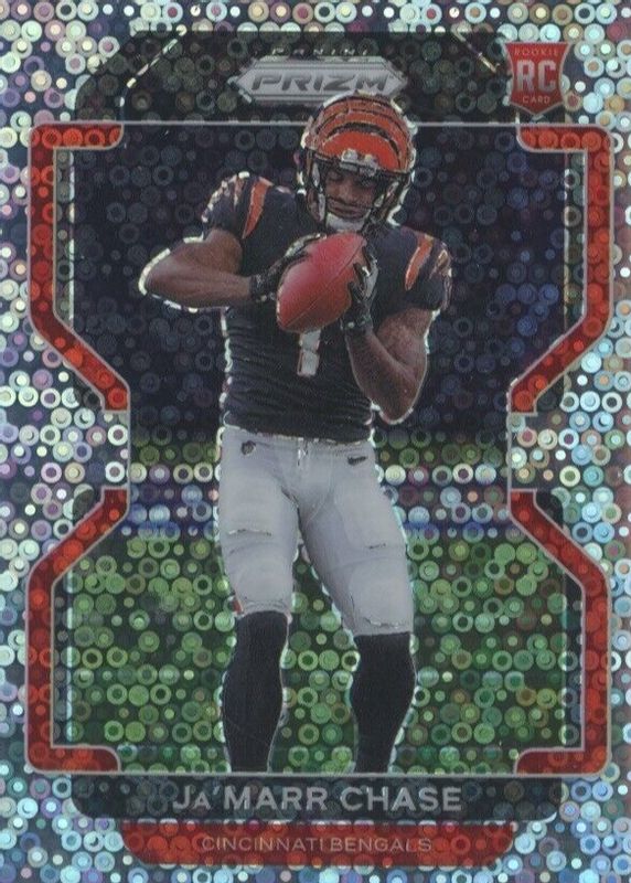 This card is 1 of 92 Ja'Marr Chase's card variations in the 2021 Prizm set being tracked by Sports Card Investor, including Base, Disco, Green, Green Ice, and Lazer.