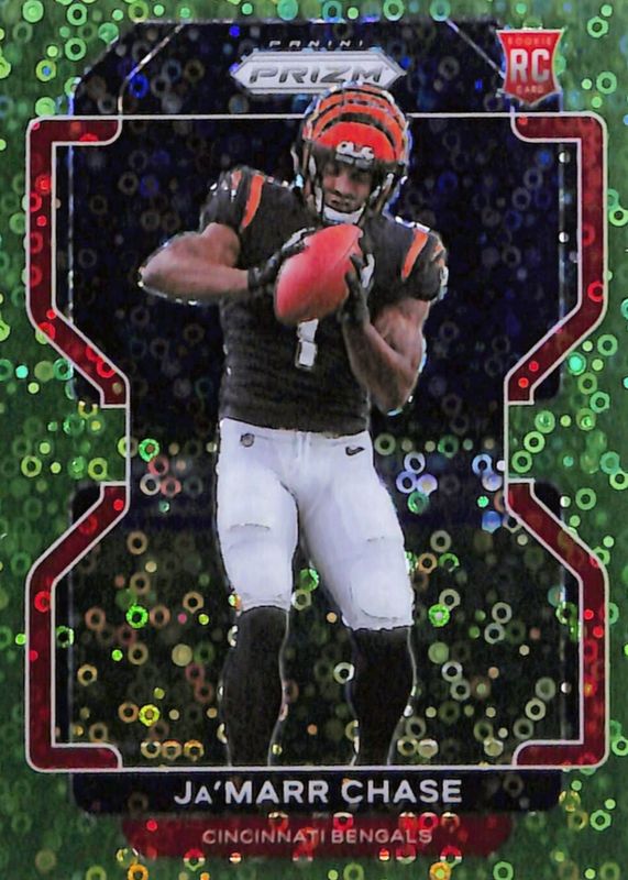 This card is 1 of 92 Ja'Marr Chase's card variations in the 2021 Prizm set being tracked by Sports Card Investor, including Base, Disco, Green, Green Ice, and Lazer.