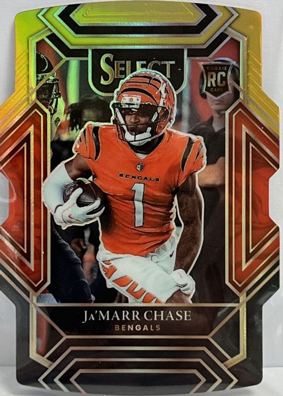 The Ja'Marr Chase 2021 Select #247 Club Level Black & Gold Die-Cut Rookie card in Raw condition has not changed in price in the last 30 days and was last sold for $5.66 .