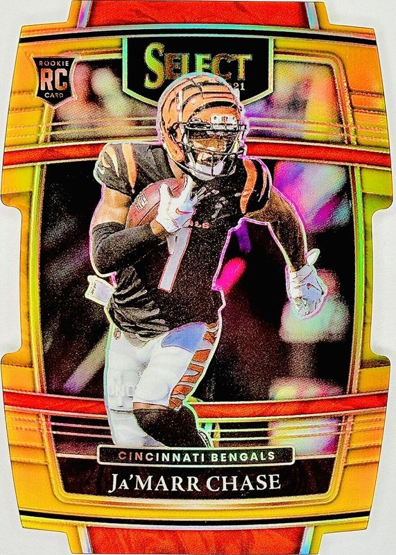 The Ja'Marr Chase 2021 Select #47 Concourse Gold Die-Cut /10 Rookie card in Raw condition has not changed in price in the last 30 days and was last sold for $104.06 .