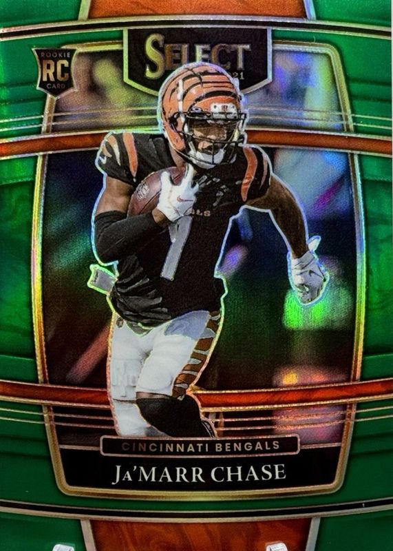 The Ja'Marr Chase 2021 Select #47 Concourse Green /5 Rookie card in Raw condition has not changed in price in the last 30 days and was last sold for $300.00 .