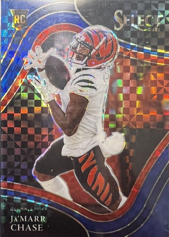 Ja’Marr Chase RC - 2021 Panini Select Field Level Blue Checkerboard /49 #347
