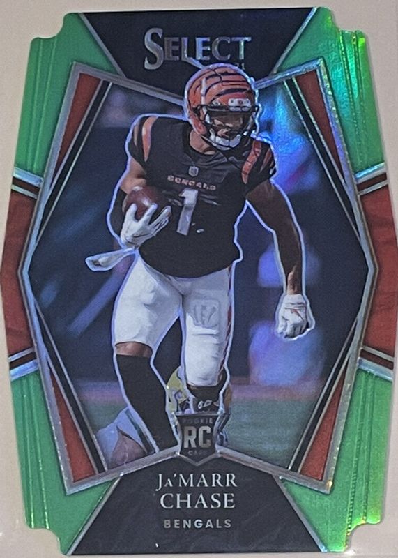 JaMarr Chase RC 2021 Select Neon Prizm Green Die Cut premier level #155/349
