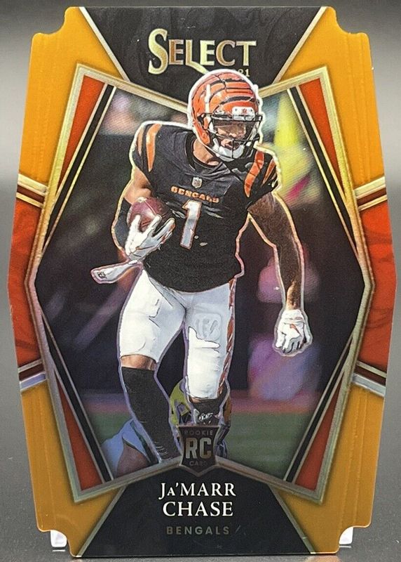 Best Prices Available For Sale of Ja'Marr Chase 2021 Select #147 Premier Level Orange Die-Cut /249