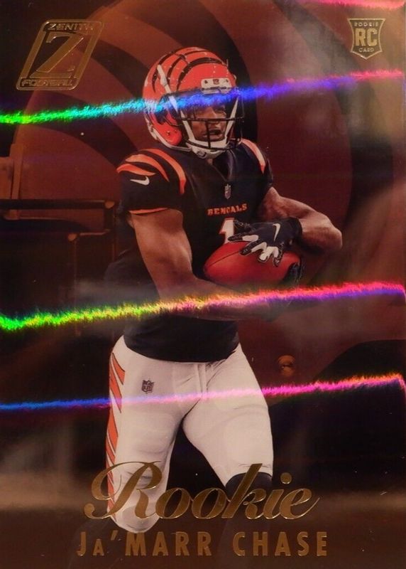 The Ja'Marr Chase 2021 Zenith #62 Base Rookie card in Raw condition has not changed in price in the last 30 days and was last sold for $0.99 .