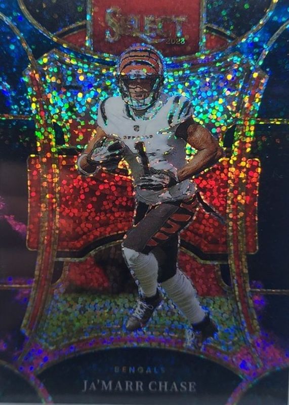 This card is 1 of 43 Ja'Marr Chase's card variations in the 2023 Select set being tracked by Sports Card Investor, including Field Level Cosmic /(SSP), Field Level Tiger /(SSP), Field Level Zebra /(SSP), Suite Level Tiger /(SSP), and Suite Level Zebra /(SSP).