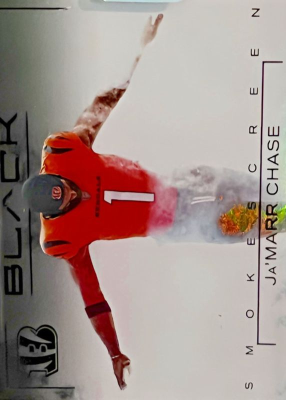 The Ja'Marr Chase 2025 Black #2 Smokescreen /(SSP) card in Raw condition has moved down -$110 (-55.1%) in the last 30 days and was last sold for $89.88 .