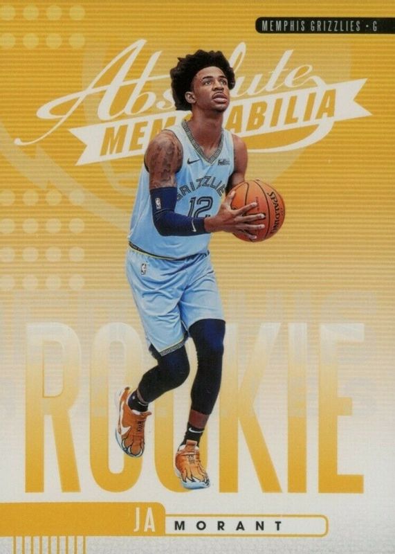 The Ja Morant 2019 Absolute Memorabilia #2 Rookies - Yellow card in Raw condition has not changed in price in the last 30 days and was last sold for $0.99 .