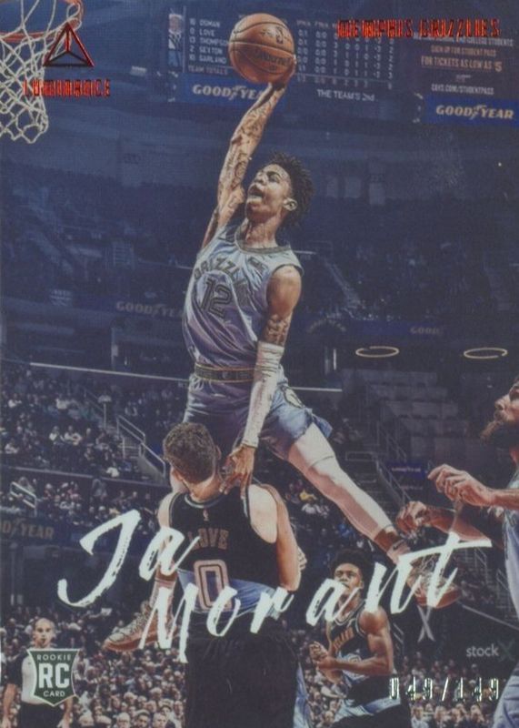 The Ja Morant 2019 Chronicles #165 Luminance - Red /149 Rookie card in Raw condition has not changed in price in the last 30 days and was last sold for $65.00 .