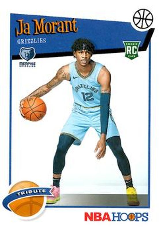 The Ja Morant 2019 Hoops #297 Base Rookie card is 1 of 62 Ja Morant's card variations in the 2019 Hoops set being tracked by Sports Card Investor, including #259 Base, #259 Premium Box Set /199, #297 Premium Box Set /199, #259 Black Artist's Proof /1, and #297 Black Artist's Proof /1.
