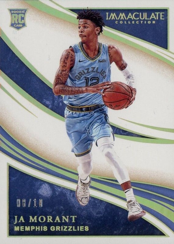This card is 1 of 11 Ja Morant's card variations in the 2019 Immaculate set being tracked by Sports Card Investor, including Base /99, Red /49, Blue /25, Platinum /1, and Rookie Patch Auto - Jersey Number (/12).