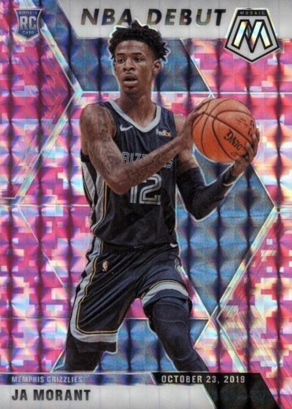 The Ja Morant 2019 Mosaic #274 NBA Debut - Pink Camo Rookie card in Raw condition has not changed in price in the last 30 days and was last sold for $14.50 .