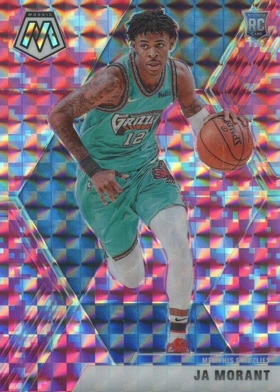 The Ja Morant 2019 Mosaic #219 Pink Camo Rookie card in Raw condition has moved down -$2.49 (-38.4%) in the last 30 days and was last sold for $3.99 .