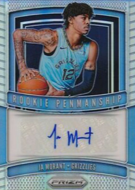 The Ja Morant 2019 Prizm #RP-JMT Rookie Penmanship - Silver card in Raw condition has not changed in price in the last 30 days and was last sold for $247.50 .