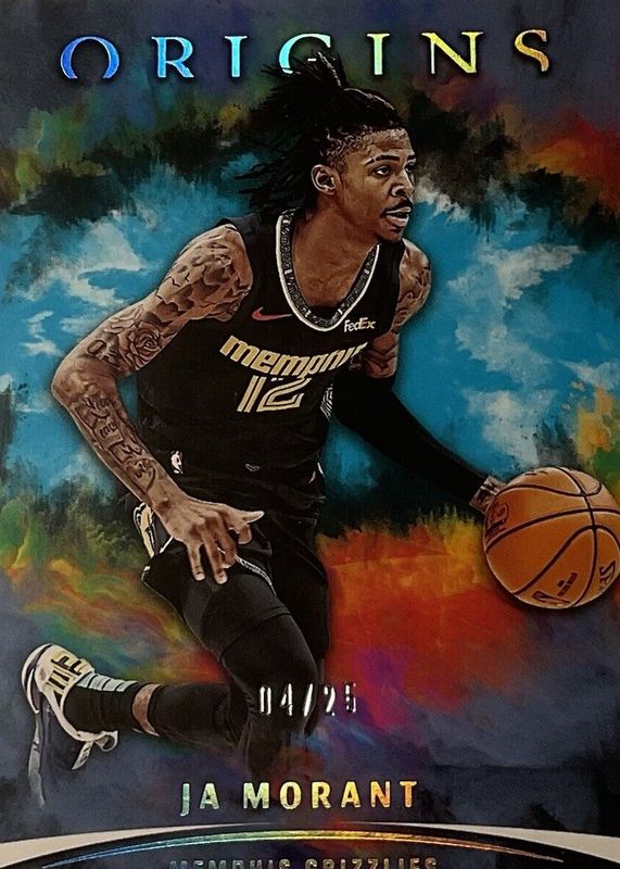 This card is 1 of 12 Ja Morant's card variations in the 2021 Origins set being tracked by Sports Card Investor, including Base, Red, Blue /99, Orange /75, and Pink /60.