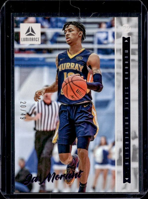 The Ja Morant 2022 Chronicles Draft Picks #23 Luminance - Purple /49 card is 1 of 75 Ja Morant's card variations in the 2022 Chronicles Draft Picks set being tracked by Sports Card Investor, including Absolute Tools of the Trade, Absolute Tools of the Trade - Green, Essentials, Essentials - Black, and Essentials - Bronze.