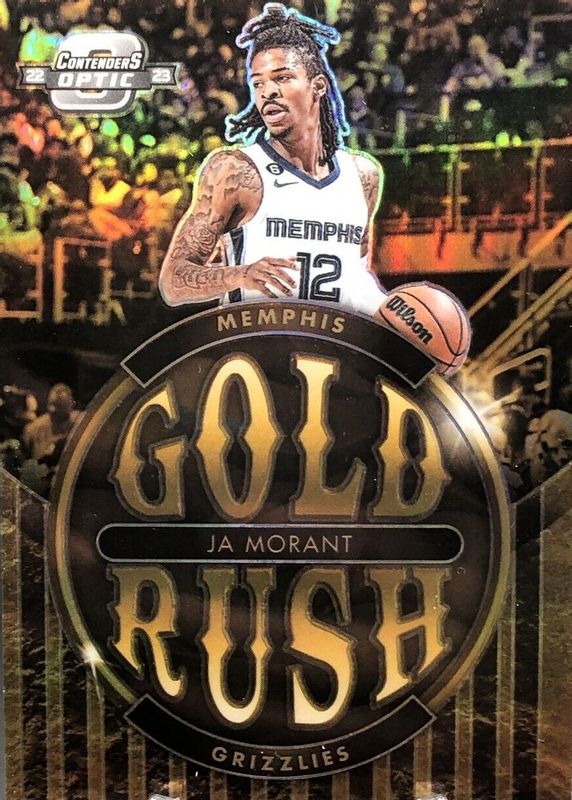The Ja Morant 2022 Contenders Optic #4 Gold Rush /(SSP) card in Raw condition has not changed in price in the last 30 days and was last sold for $32.47 .