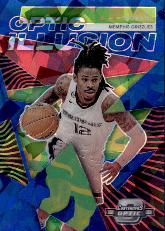2022-23 Panini Contenders Optic Ja Morant Optic Illusion Blue Cracked Ice #/75