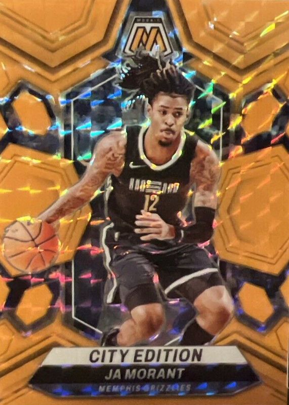 The Ja Morant 2023 Mosaic #288 City Edition - Orange Fluorescent /25 card in Raw condition has not changed in price in the last 30 days and was last sold for $18.50 .