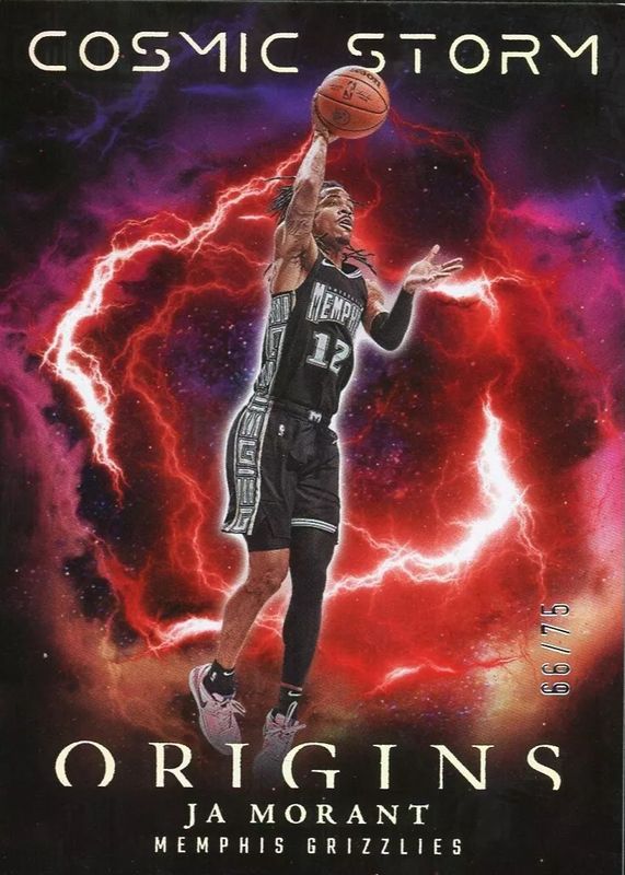 This card is 1 of 4 Ja Morant's card variations in the 2023 Origins set being tracked by Sports Card Investor, including Cosmic Storm, Snake Eyes /(SSP), and Cosmic Storm - Gold /10.