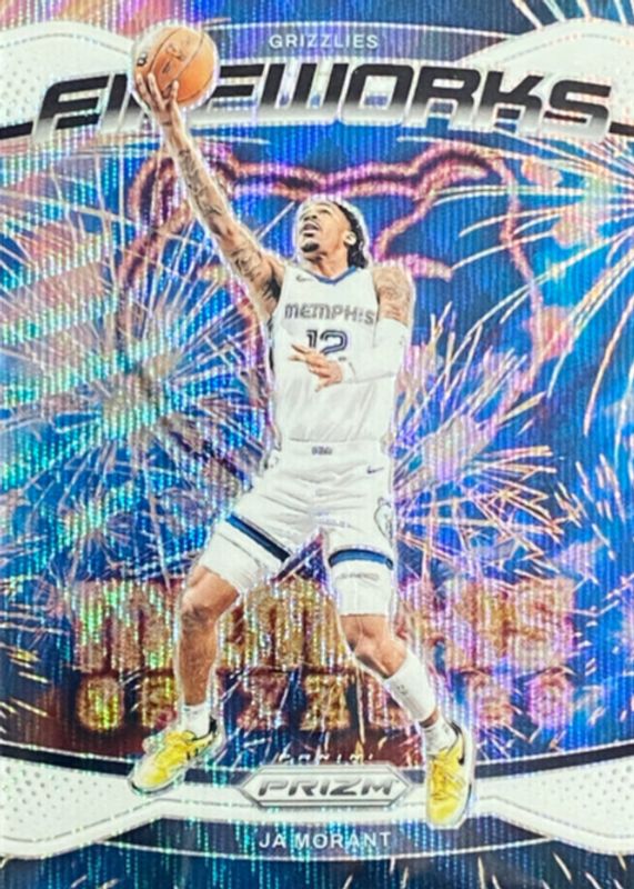 The Ja Morant 2024 Prizm #24 Fireworks - White Wave /20 card in Raw condition has moved up $2.00 (+8.3%) in the last 30 days and was last sold for $26.00 .