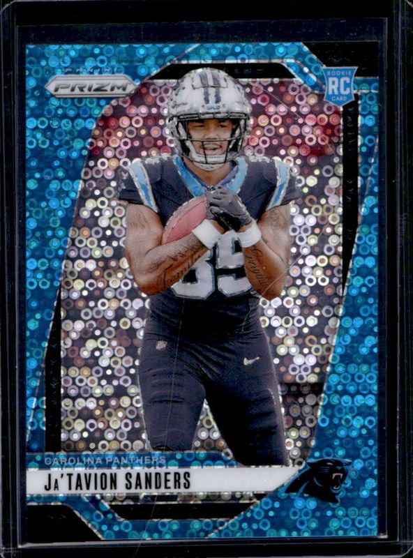 The Ja'Tavion Sanders 2024 Prizm #343 No Huddle Blue /99 Rookie card is 1 of 103 Ja'Tavion Sanders' card variations in the 2024 Prizm set being tracked by Sports Card Investor, including Base, Choice Blue Yellow Green, Choice Silver, Disco, and Green.