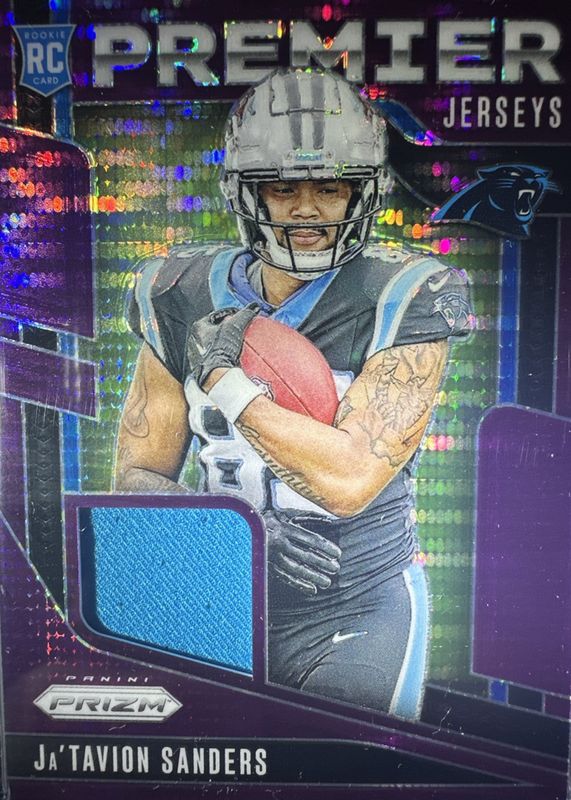 The Ja'Tavion Sanders 2024 Prizm #PJ-JSS Premier Jerseys - Purple Pulsar Rookie card in Raw condition has not changed in price in the last 30 days and was last sold for $0.99 .