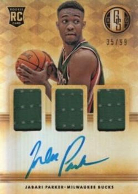 The Jabari Parker 2014 Gold Standard #268 Base /149 Rookie card is 1 of 13 Jabari Parker's card variations in the 2014 Gold Standard set being tracked by Sports Card Investor, including #235 Base /149, #202 Base /149, #16 Golden Debuts /50, #NM-JP Newly Minted Memorabilia /25, and #268 Rookie Jersey Autographs - Prime /25.