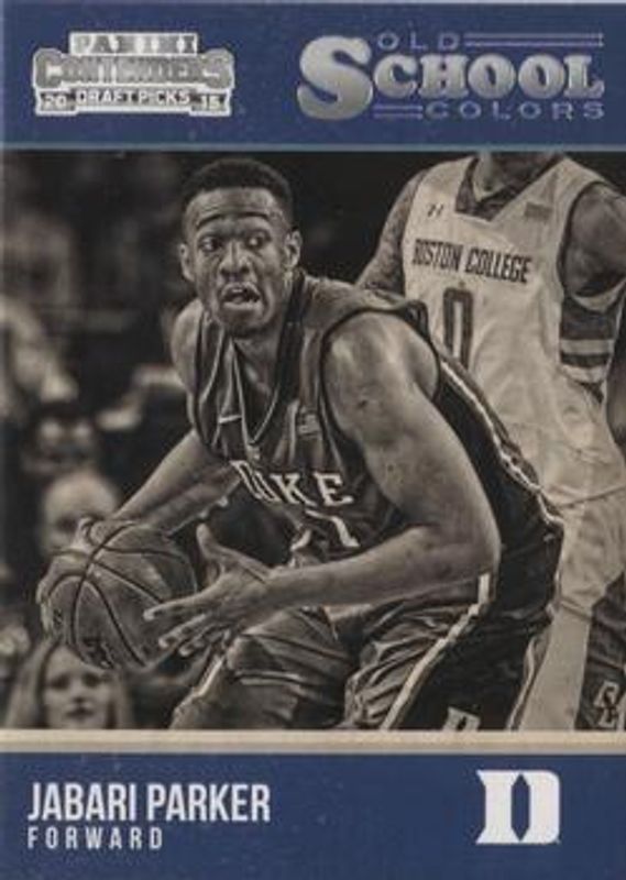 The Jabari Parker 2015 Contenders Draft Picks #12 Old School Colors card is 1 of 10 Jabari Parker's card variations in the 2015 Contenders Draft Picks set being tracked by Sports Card Investor, including Base, Draft Ticket /99, Season Ticket Cracked Ice /23, Championship Ticket /1, and Season Ticket Printing Plates Black /1.