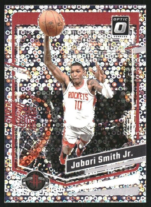 The Jabari Smith 2023 Optic #164 Fast Break card is 1 of 62 Jabari Smith's card variations in the 2023 Optic set being tracked by Sports Card Investor, including Base, Blue Velocity, Checkerboard, Choice Red & Green, and Green Shock.