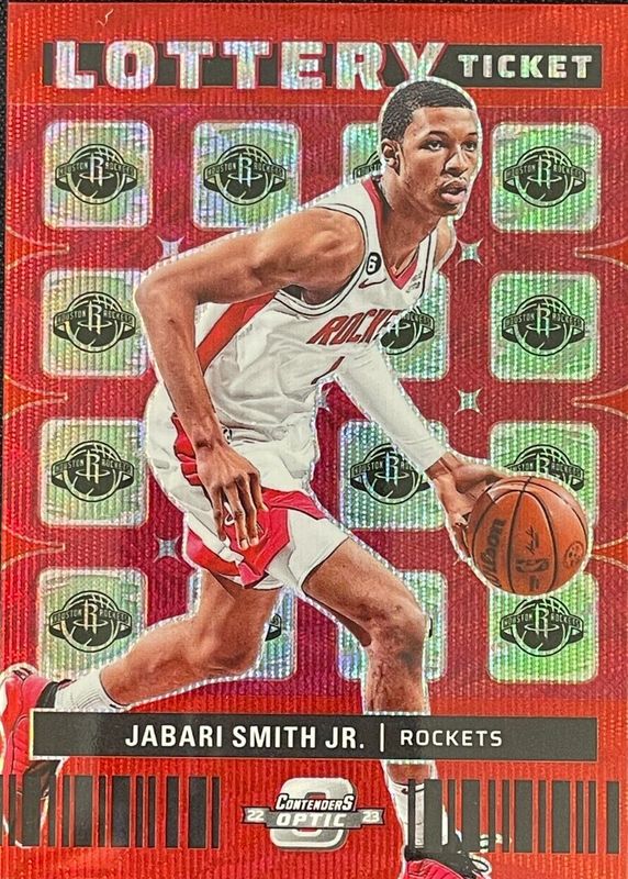 The Jabari Smith Jr. 2022 Contenders Optic #3 Lottery Ticket - Red Wave Rookie card in Raw condition has not changed in price in the last 30 days and was last sold for $3.25 .
